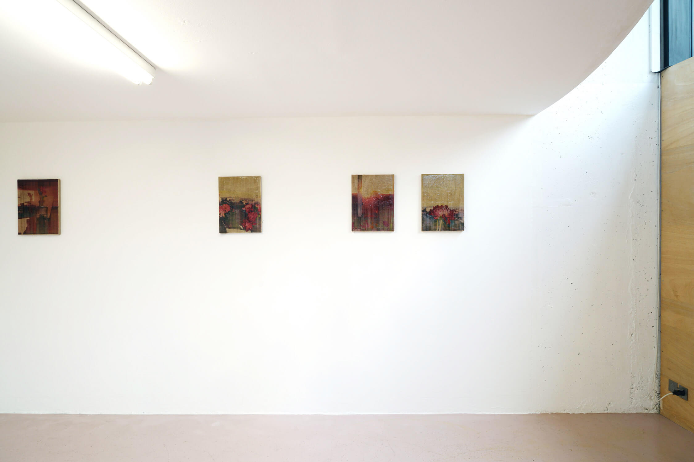 This 2016 series of paintings are made from photos that Parker Ito took from his apartment window overlooking Hollywood and its famous Capitol Records Tower. Captured on an early digital point-and-shoot camera, circa 2003, and reworked with Ito’s characteristic style, the image ‘resolution’ is low but contains these nearly-painterly quality due to the soft focus, blurred forms, etc. These eight “Capitol Records Shit Toots” are produced with a transfer process whereby Parker Ito captures an image, tiles the image, prints them on letter-sized paper, applies an acrylic medium to the support and then presses the image onto the linen. The paper is then scrubbed away leaving only the image on canvas. Finally the painting is irregularly varnished.